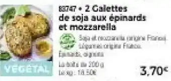 2 Galettes de soja aux épinards et mozzarella offres et promotions en ligne chez Thiriet