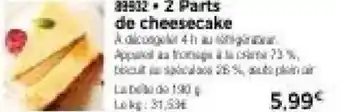 L'offre est disponible dans plusieurs magasins, vérifiez tous les produits pour obtenir le 2 parts de cheesecake le moins cher. Si vous souhaitez savoir si l'article est en vente avec une plus grosse remise dans un autre magasin, consultez la catégorie 'Supermarché'. Ces offres pourraient aussi vous intéresser : Façon cheesecake myrtille, Façon cheesecake myrtille & Tropézienne 6 Parts.