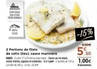 2 Portions de filets de colin lieu, sauce marinière : offres et promos Thiriet à découvrir
