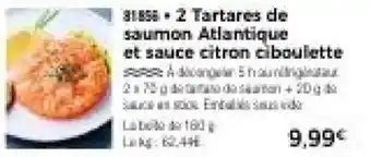 Offre 2 Tartares de saumon Atlantique et sauce citron ciboulette chez Thiriet