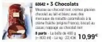 L'offre est disponible dans plusieurs magasins, vérifiez tous les produits pour obtenir le 3 chocolats le moins cher. Si vous souhaitez savoir si l'article est en vente avec une plus grosse remise dans un autre magasin, consultez la catégorie 'Supermarché'. Ces offres pourraient aussi vous intéresser : 60 chocolats assortis, Chocolats fourrés & Trois chocolats.