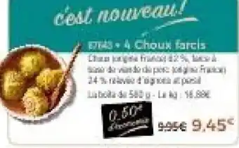 L'offre est disponible dans plusieurs magasins, vérifiez tous les produits pour obtenir le 4 choux farcis le moins cher. Si vous souhaitez savoir si l'article est en vente avec une plus grosse remise dans un autre magasin, consultez la catégorie 'Supermarché'. Ces offres pourraient aussi vous intéresser : 4 Choux farcis, Choux cabus et choux fleur & Choux de bruxelles.