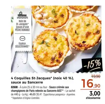 Offre 4 Coquilles St-Jacques (noix 40 %), sauce au Sancerre chez Thiriet