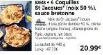4 Coquilles St-Jacques noix 50 % sauce bretonne offres et promotions en ligne chez Thiriet