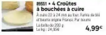 L'offre est disponible dans plusieurs magasins, vérifiez tous les produits pour obtenir le 4 croûtes à bouchées à cuire le moins cher. Si vous souhaitez savoir si l'article est en vente avec une plus grosse remise dans un autre magasin, consultez la catégorie 'Supermarché'. Ces offres pourraient aussi vous intéresser : 4 bouchées à la reine, 6 BOUCHÉES À LA REINE & 6 bouchées à la reine.