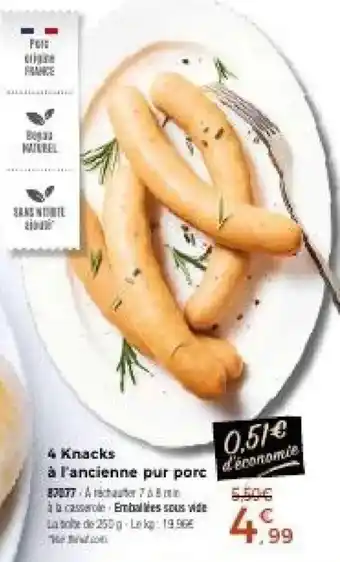 L'offre est disponible dans plusieurs magasins, vérifiez tous les produits pour obtenir le 4 knacks le moins cher. Si vous souhaitez savoir si l'article est en vente avec une plus grosse remise dans un autre magasin, consultez la catégorie 'Supermarché'. Ces offres pourraient aussi vous intéresser : Knacks d'Alsace, Knacks d'Alsace & Saveurs de nos regions knacks d'alsace.