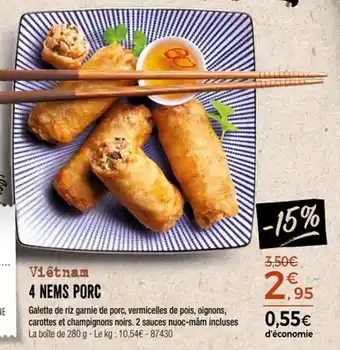 L'offre est disponible dans plusieurs magasins, vérifiez tous les produits pour obtenir le 4 nems porc le moins cher. Si vous souhaitez savoir si l'article est en vente avec une plus grosse remise dans un autre magasin, consultez la catégorie 'Supermarché'. Ces offres pourraient aussi vous intéresser : Nems au porc, Nems cocktail porc & AUCHAN Nems au porc.
