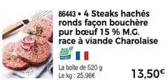 4 steaks hachés ronds façon bouchère pur bœuf 15 % m.g offres et promotions en ligne chez Thiriet