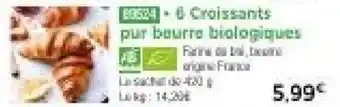 6 croissants pur beurre biologiques offres et promotions en ligne chez Thiriet
