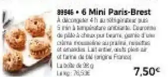 L'offre est disponible dans plusieurs magasins, vérifiez tous les produits pour obtenir le 6 mini paris-brest le moins cher. Si vous souhaitez savoir si l'article est en vente avec une plus grosse remise dans un autre magasin, consultez la catégorie 'Supermarché'. Ces offres pourraient aussi vous intéresser : Paris-brest, Paris-brest & Paris brest.