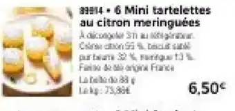 En plus de l'offre 6 Mini tartelettes au citron meringuées, Thiriet propose une large gamme de produits. Consultez le Catalogue Thiriet hebdomadaire pour découvrir les meilleures offres et promotions. En plus de 6 Mini tartelettes au citron meringuées, il y a aussi : 3 Tartelettes Couronne Meringuées + 1 Offerte, Tartelettes citron & Tartelettes citron.