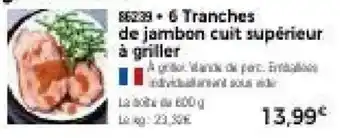 6 Tranches de jambon cuit supérieur à griller