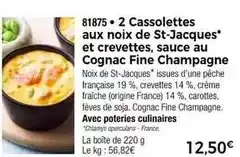 81875 2 cassolettes aux noix de st-jacques* et crevettes, sauce au cognac fine champagne