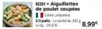 L'offre est disponible dans plusieurs magasins, vérifiez tous les produits pour obtenir le Aiguillettes de poulet coupées le moins cher. Si vous souhaitez savoir si l'article est en vente avec une plus grosse remise dans un autre magasin, consultez la catégorie 'Supermarché'. Ces offres pourraient aussi vous intéresser : Aiguillettes de poulet, Aiguillettes de poulet & Aiguillettes de poulet.