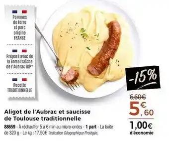 Aligot de l'aubrac et saucisse de toulouse traditionnelle offres et promotions en ligne chez Thiriet