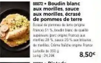 Boudin blanc aux morilles, sauce aux morilles, écrasé de pommes de terre : offres et promos Thiriet à découvrir