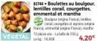 Offre Boulettes au boulgour, lentilles corail courgettes. emmental et menthe chez Thiriet