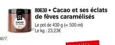 L'offre est disponible dans plusieurs magasins, vérifiez tous les produits pour obtenir le Cacao et ses éclats de fêves caramélisés le moins cher. Si vous souhaitez savoir si l'article est en vente avec une plus grosse remise dans un autre magasin, consultez la catégorie 'Supermarché'. Ces offres pourraient aussi vous intéresser : Fêves de soja edamame, Feves pelées & Collection de fèves.
