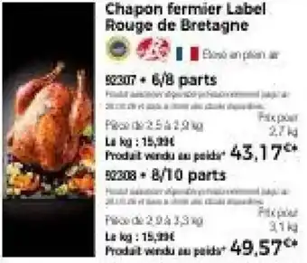 Chapon fermier label rouge de bretagne 3.1 kg / 2.7 kg