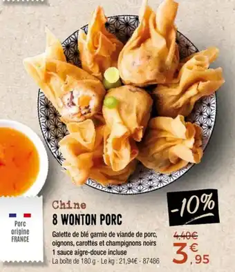 Chine 8 wonton porc 180 g