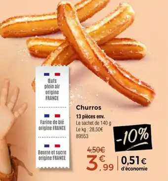 L'offre est disponible dans plusieurs magasins, vérifiez tous les produits pour obtenir le Churros le moins cher. Si vous souhaitez savoir si l'article est en vente avec une plus grosse remise dans un autre magasin, consultez la catégorie 'Supermarché'. Ces offres pourraient aussi vous intéresser : Churros, Churros de pommes de terre & Churros de pommes de terre.