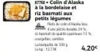 Le prix de l'offre Colin d'Alaska à la bordelaise et riz basmati aux petits légumes se trouve également en haut de la page, ainsi que la date à laquelle l'offre est disponible. Vous pouvez également vérifier les prix dans le Catalogue Thiriet actuel ou sur le site Internet de Thiriet. Les offres vous permettent d'acheter les produits Thiriet au prix le plus bas.
