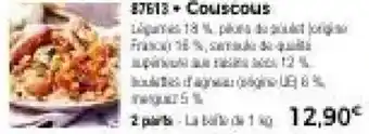 L'offre est disponible dans plusieurs magasins, vérifiez tous les produits pour obtenir le Couscous le moins cher. Si vous souhaitez savoir si l'article est en vente avec une plus grosse remise dans un autre magasin, consultez la catégorie 'Supermarché'. Ces offres pourraient aussi vous intéresser : Couscous, Couscous & Couscous.