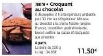 Découvrez les produits les moins chers parmi toutes les offres ! Si vous voulez savoir si Thiriet propose la meilleure remise pour Croquant au chocolat, comparez-la sur la page thèmes ou avec d'autres magasins.