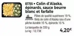 Durable - colin d'alaska, épinards, sauce beurre blanc et farfalle