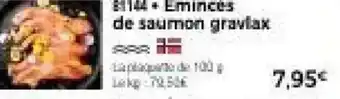 L'offre est disponible dans plusieurs magasins, vérifiez tous les produits pour obtenir le Emincés de saumon gravlax le moins cher. Si vous souhaitez savoir si l'article est en vente avec une plus grosse remise dans un autre magasin, consultez la catégorie 'Supermarché'. Ces offres pourraient aussi vous intéresser : Mowi saumon gravlax, Saumon gravlax mowi & Mowi - saumon gravlax.