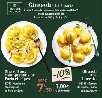 L'offre est disponible dans plusieurs magasins, vérifiez tous les produits pour obtenir le Girasoli le moins cher. Si vous souhaitez savoir si l'article est en vente avec une plus grosse remise dans un autre magasin, consultez la catégorie 'Supermarché'. Ces offres pourraient aussi vous intéresser : GIRASOLI, Girasoli a la burrata & Girasoli aux champignons de paris et cépes.
