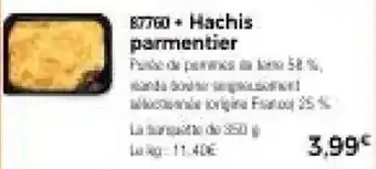 L'offre est disponible dans plusieurs magasins, vérifiez tous les produits pour obtenir le Hachis parmentier le moins cher. Si vous souhaitez savoir si l'article est en vente avec une plus grosse remise dans un autre magasin, consultez la catégorie 'Supermarché'. Ces offres pourraient aussi vous intéresser : Hachis parmentier, Hachis de bœuf & Parmentier de canard.