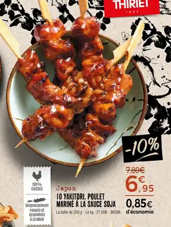 Actuellement en offre chez Thiriet : Japon 10 yakitori poulet marine a la sauce soja ✅ Valable du 1-01 au 25-01.