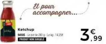 L'offre est disponible dans plusieurs magasins, vérifiez tous les produits pour obtenir le Ketchup le moins cher. Si vous souhaitez savoir si l'article est en vente avec une plus grosse remise dans un autre magasin, consultez la catégorie 'Supermarché'. Ces offres pourraient aussi vous intéresser : Ketchup heinz, Ketchup Zéro Sel Ajouté Heinz & Ketchup nature top up.