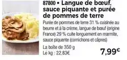 Langue de bœuf, sauce piquante et purée de pommes de terre : offres et promos Thiriet à découvrir