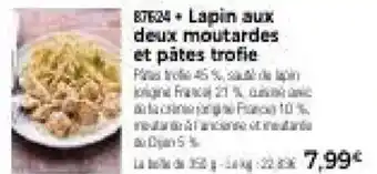 Actuellement en offre chez Thiriet : Lapin aux deux moutardes et pâtes trofie ✅ Valable du 1-03 au 23-06.