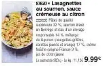 Lasagnettes au saumon, sauce crémeuse au citron offres et promotions en ligne chez Thiriet