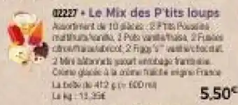 Le prix de l'offre Le mix des p'tits loups se trouve également en haut de la page, ainsi que la date à laquelle l'offre est disponible. Vous pouvez également vérifier les prix dans le Catalogue Thiriet actuel ou sur le site Internet de Thiriet. Les offres vous permettent d'acheter les produits Thiriet au prix le plus bas.