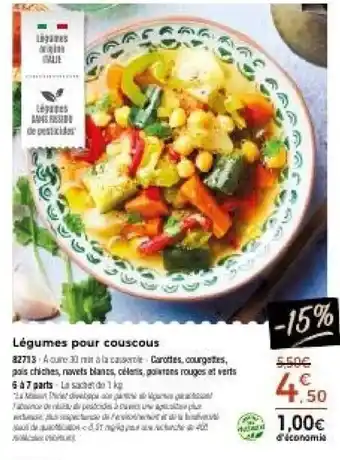 En plus de l'offre Legumes pour couscous, Thiriet propose une large gamme de produits. Consultez le Catalogue Thiriet hebdomadaire pour découvrir les meilleures offres et promotions. En plus de Legumes pour couscous, il y a aussi : Légumes pour couscous, Légumes pour couscous & Légumes pour couscous surgelés auchan.