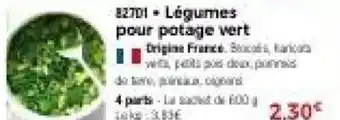 Le prix de l'offre Légumes pour potage vert se trouve également en haut de la page, ainsi que la date à laquelle l'offre est disponible. Vous pouvez également vérifier les prix dans le Catalogue Thiriet actuel ou sur le site Internet de Thiriet. Les offres vous permettent d'acheter les produits Thiriet au prix le plus bas.
