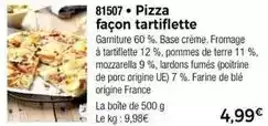 L'offre est disponible dans plusieurs magasins, vérifiez tous les produits pour obtenir le Pizza façon tartiflette le moins cher. Si vous souhaitez savoir si l'article est en vente avec une plus grosse remise dans un autre magasin, consultez la catégorie 'Supermarché'. Ces offres pourraient aussi vous intéresser : Tartiflette, 12 mini quiches, trois fromages et façon pizza & CARREFOUR Tartiflette.
