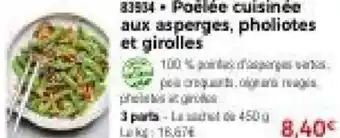 Le prix de l'offre Poêlée cuisinée aux asperges, pholiotes et girolles se trouve également en haut de la page, ainsi que la date à laquelle l'offre est disponible. Vous pouvez également vérifier les prix dans le Catalogue Thiriet actuel ou sur le site Internet de Thiriet. Les offres vous permettent d'acheter les produits Thiriet au prix le plus bas.