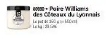 En plus de l'offre Poire williams des côteaux du lyonnais, Thiriet propose une large gamme de produits. Consultez le Catalogue Thiriet hebdomadaire pour découvrir les meilleures offres et promotions. En plus de Poire williams des côteaux du lyonnais, il y a aussi : Poire williams, Compote pomme/poire williams 100% fruits & Aop coteaux du lyonnais rouge.