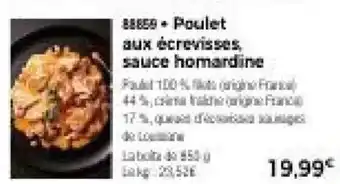 Poulet aux écrevisses, sauce homardine offres et promotions en ligne chez Thiriet
