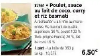 Poulet, sauce au lait de coco, curry et riz basmati offres et promotions en ligne chez Thiriet