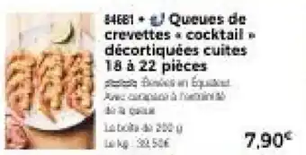 Offre Queues de crevettes cocktail décortiquées cuites 18 à 22 pièces chez Thiriet