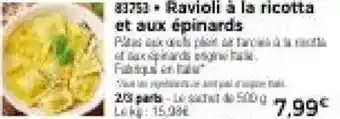 Offre Ravioli à la ricotta et aux épinards chez Thiriet