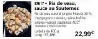 Ris de veau sauce au sauternes : offres et promos Thiriet à découvrir