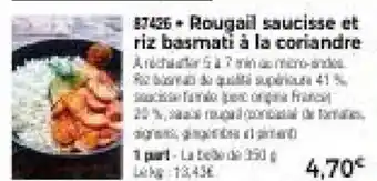 Offre Rougail saucisse et riz basmati à la coriandre chez Thiriet