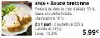 Le prix de l'offre Sauce bretonne se trouve également en haut de la page, ainsi que la date à laquelle l'offre est disponible. Vous pouvez également vérifier les prix dans le Catalogue Thiriet actuel ou sur le site Internet de Thiriet. Les offres vous permettent d'acheter les produits Thiriet au prix le plus bas.